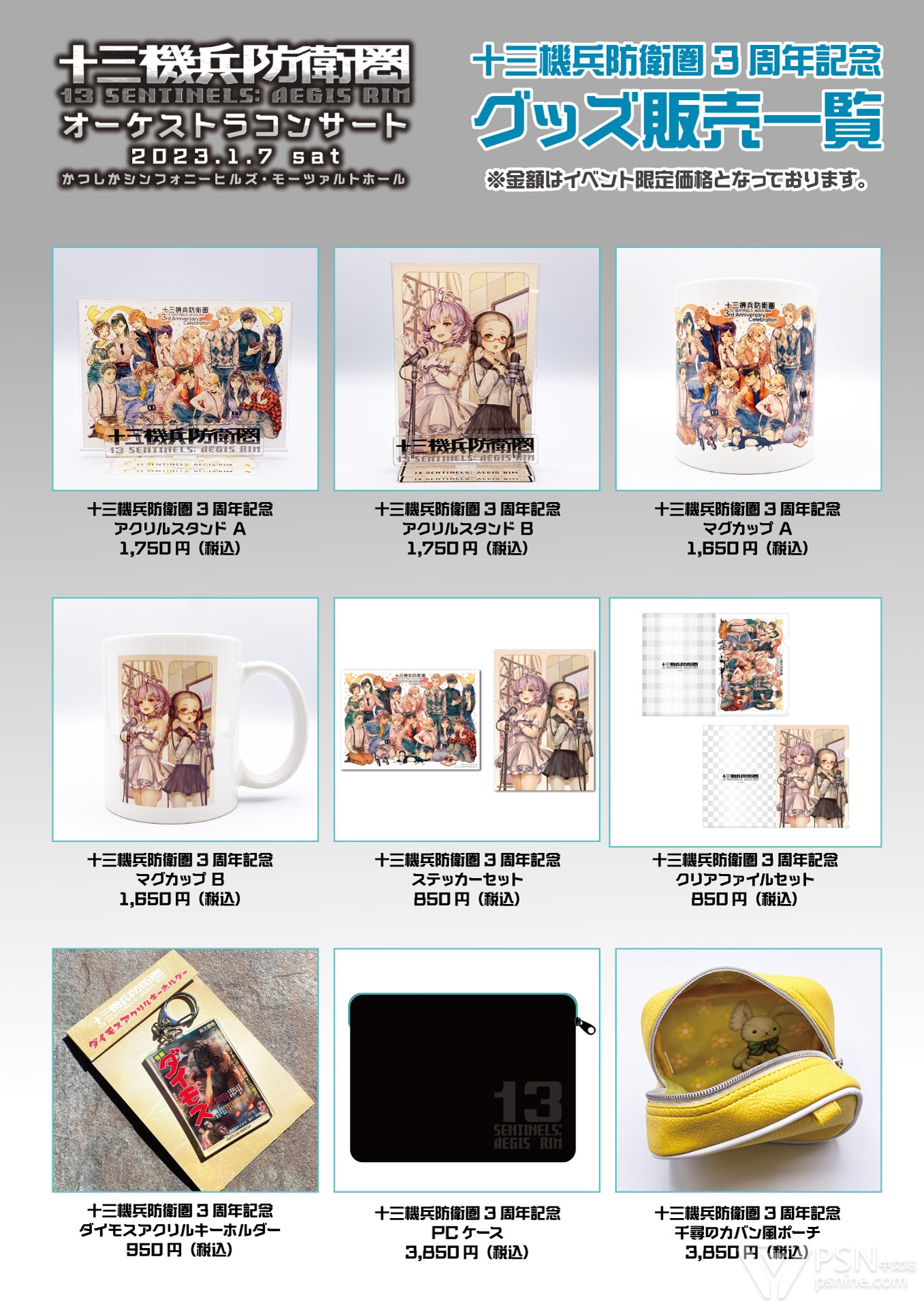 《十三机兵防卫圈》交响音乐会将于明日正式开演,官方公开音乐会周边相关情报,内容包括公演小册子、3周年纪念亚克力立牌、马克杯、贴纸套组、文件夹套组、钥匙扣、PC收纳包、千寻书包风格收纳包。