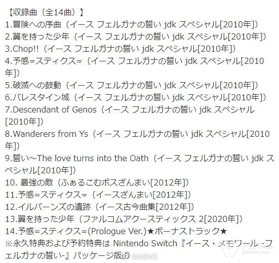 日本Falcom今日宣布,ARPG游戏《伊苏回忆 菲尔盖纳之誓约》确认将于4月27日发售,登陆Switch平台,游戏售价税前4400日元,4月26日前在日服eShop购买下载版可享10%OFF首发折扣。日版预约特典为《伊苏 菲尔盖纳之誓约 SOUND MEMOIRE 2010-2020》,收录2010年~2020年期间发表的所有本作相关改编曲目,永久特典为替换封面。