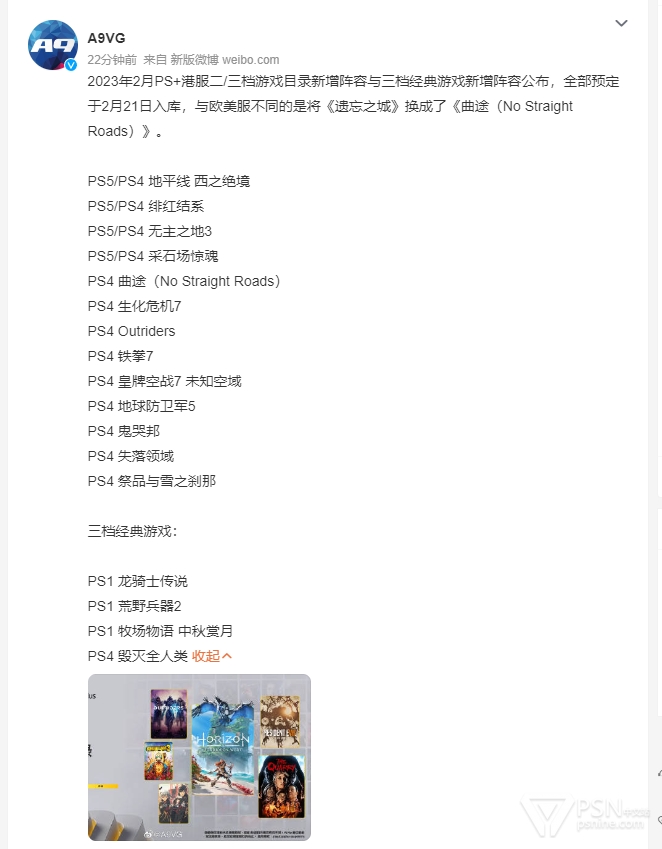 2023年2月PS+港服二/三档游戏
