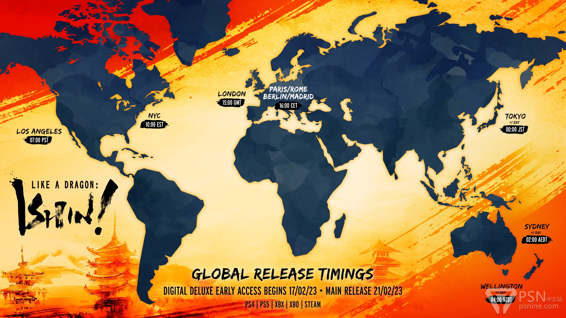 但《如龙:维新-极》官方发的各地解锁时间是统一的,换算成北京时间都是今日的23:00。