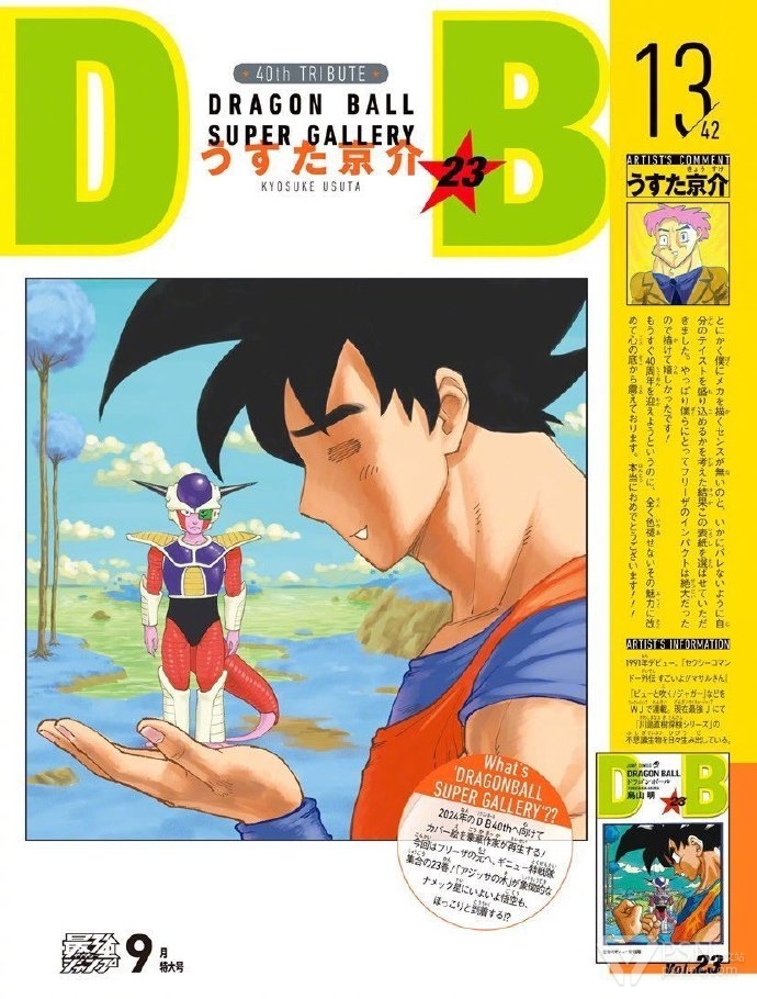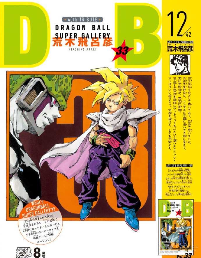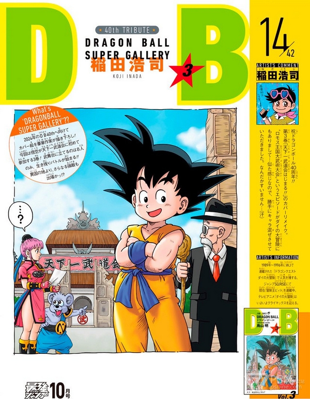 多位漫画家被邀请来为龙珠42卷封面重绘活动:「火影忍者」作者·岸本齐史、「死神」作者·久保带人、「家庭教师」天野明、「滑头鬼之孙」椎桥宽 、「黑子的篮球」作者·藤卷忠俊、「间谍过家家」作者·远藤达哉、「电锯人」作者·藤本树、「鬼灭之刃」作者·吾峠呼世晴、「恶魔奶爸」作者·田村隆平、「乌龙派出所」作者·秋本治、「学园救援团」「彼方的阿斯特拉」「魔女与使魔」作者·篠原健太、「美食的俘虏」作者·岛袋光年、「JOJO的奇妙冒险」荒木飞吕彦、「博人传」池本干雄、「魔人侦探」松井优征、「勇者斗恶龙」稻田浩司、「搞怪吹笛手」うすた京介 等......活动将持续到2024年11月