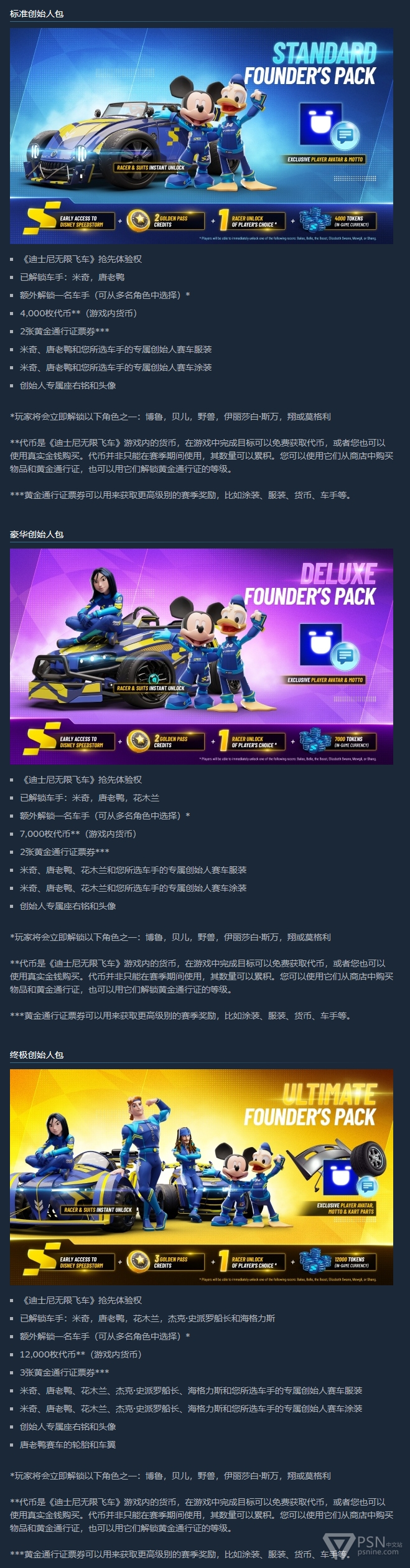 《迪士尼:无限飞车》将于2023年4月18日以抢先体验的方式登陆PS4/PS5,购买了创始人包(有标准、豪华、终极三档可供选择)的玩家可参与抢先体验。未来本作在脱离抢先体验、正式推出后,将作为免费游戏运营。本作由Gameloft开发,支持简体中文&繁体中文。