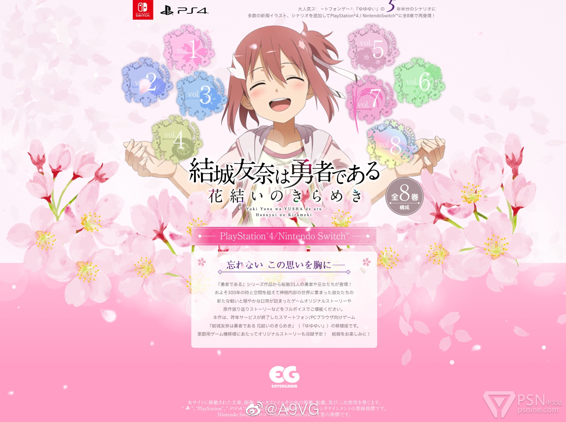 去年结束运营的手机/网页游戏《结城友奈是勇者 花结的闪光》主机版平台确认,将登陆PS4和Switch,由8卷构成,包含一个原创故事。