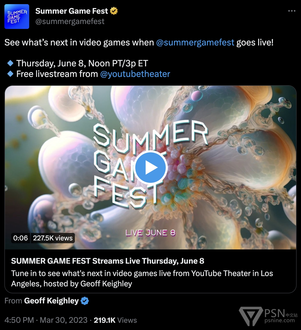 夏日游戏节正式宣布今年的举办时间,6月8日开幕