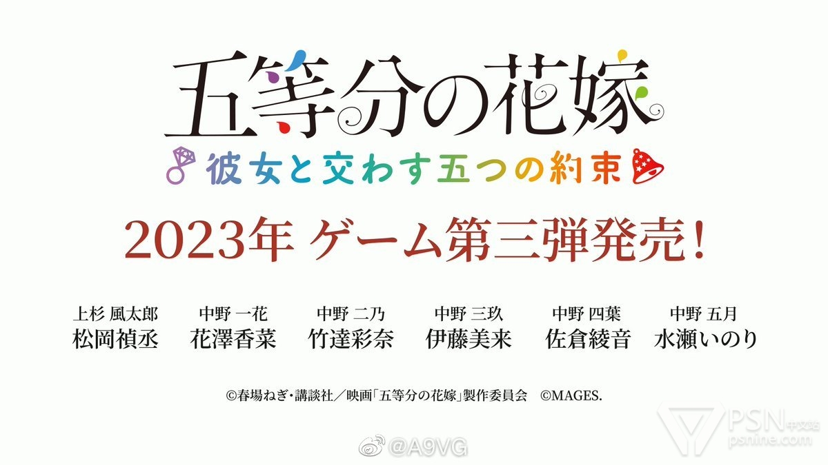 (图1)《五等分的新娘》主机游戏新作第三弹《五等分的新娘~与她许下的五个约定~》发表,更多情报将在今后公开。