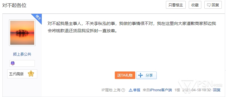 “卖盘哥”本体?亲自来ps5贴吧道歉?然鹅吧友不吃这套。