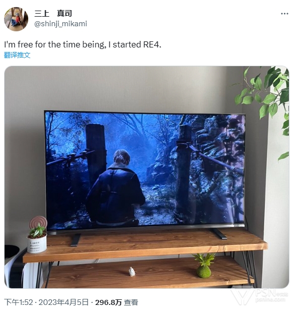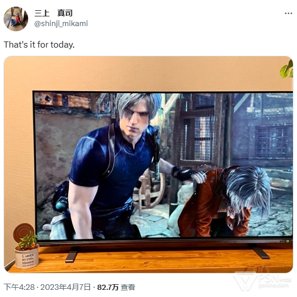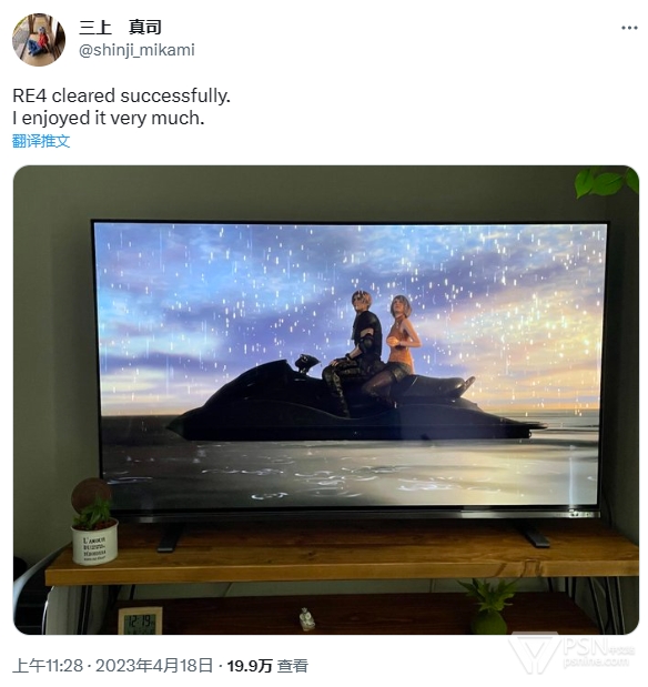 三上真司今天中午发推:已经通关了《生化危机4》,非常喜欢这款游戏。