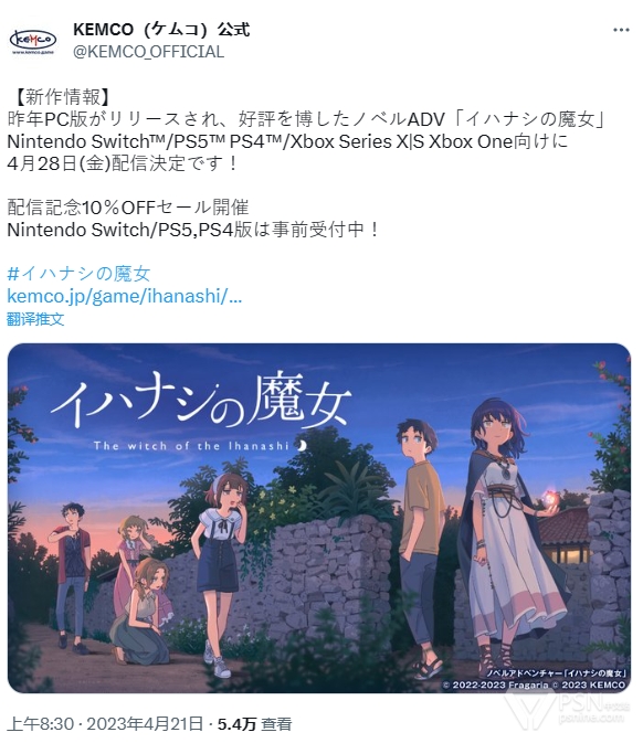 《传述之魔女》将于2023年4月28日登陆PS5/PS4,游戏支持简体中文。售价2860日元(预购可享9折优惠);目前本作已上架日本PlayStation Store(点出处),但截止至本帖发出时预购尚未开启。