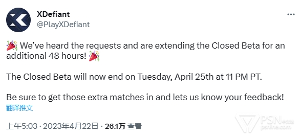 《不羁联盟》封闭测试延长48小时,测试将持续至北京时间2023年4月26日14:00