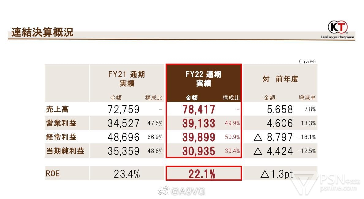 光荣特库摩今日公开22-23财年年度财报(22年4月~23年3月),财年销售额784.17亿日元,同比增长7.8%,营业利润391.33亿日元,同比增长13.3%。