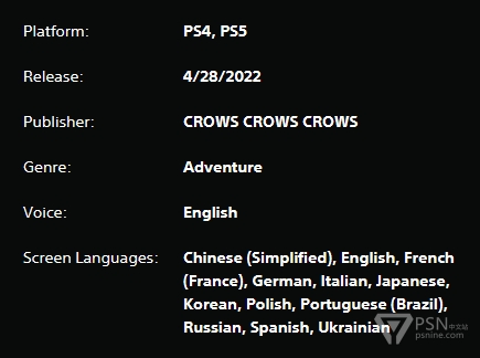 截图为美国PlayStation Store本作的语言信息,显示已包含简体中文字幕。