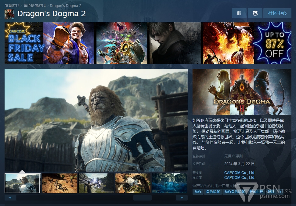 Steam版《龙之信条2》商店页面更新,显示本作将于2024年3月22日发售。游戏支持简体中文&繁体中文。