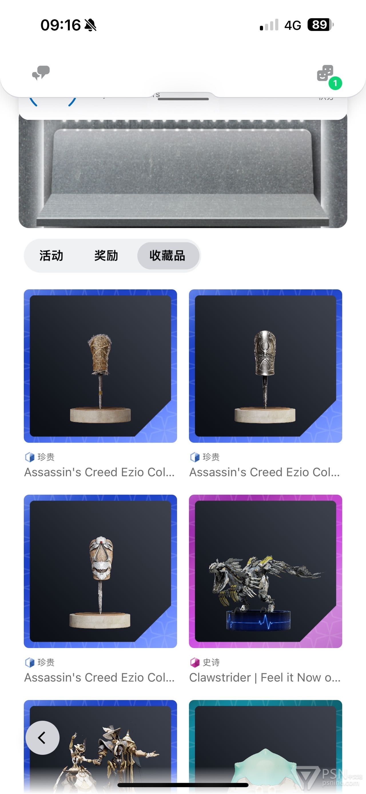 奖励页面下刷新了3个刺客信条任务珍贵级别的袖剑藏品,和之前的登录奖励长得一模一样,需要用积分兑换。