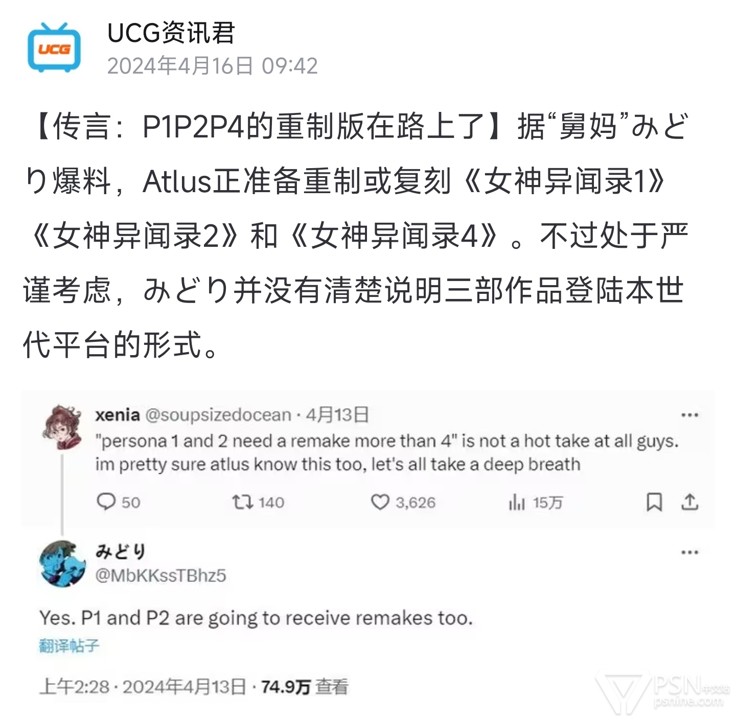 至于p4,完全重制可以接受,只要不搞钉宫250,咱们就是好朋友