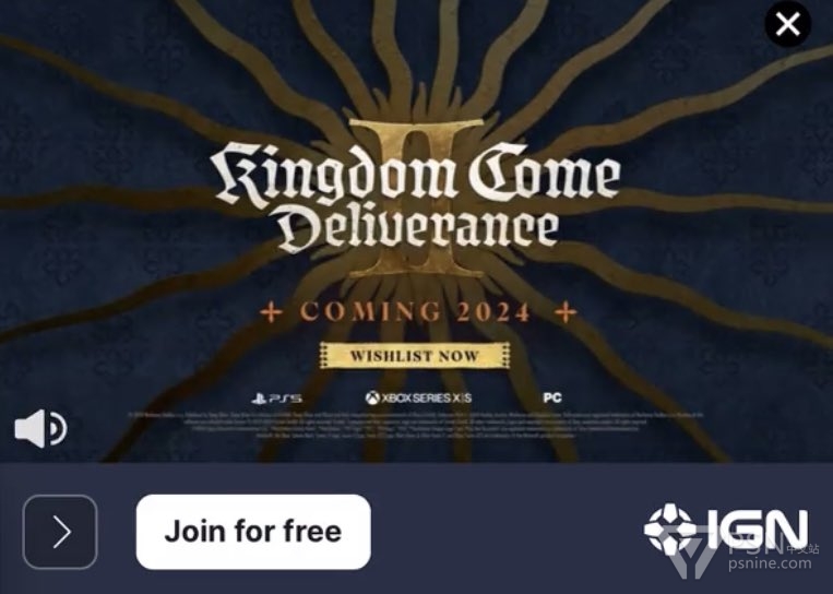 IGN的广告泄露了《天国:拯救2》的宣传片,宣传片显示本作将于2024年登陆PS5等平台。