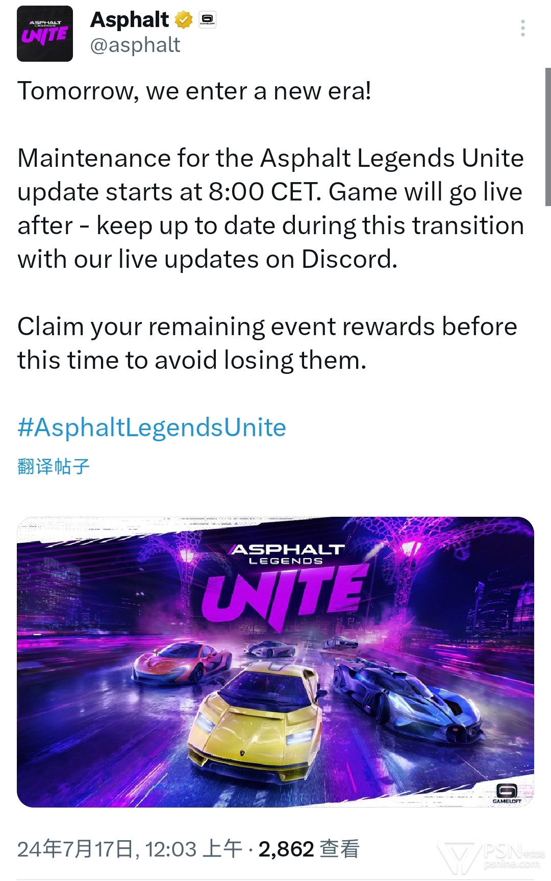 为了迎接本次更新,原游戏在北京时间7月17日下午两点进行停机维护。