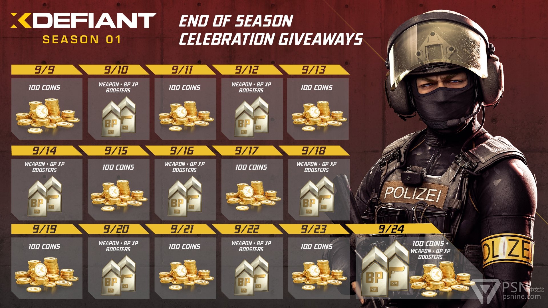 图1中的“100 Coins”指100不羁币、“Weapon+BP XP Boosters”指武器&战斗通行证双倍经验。图中的日期为太平洋时间,北京时间需要向后推一天。