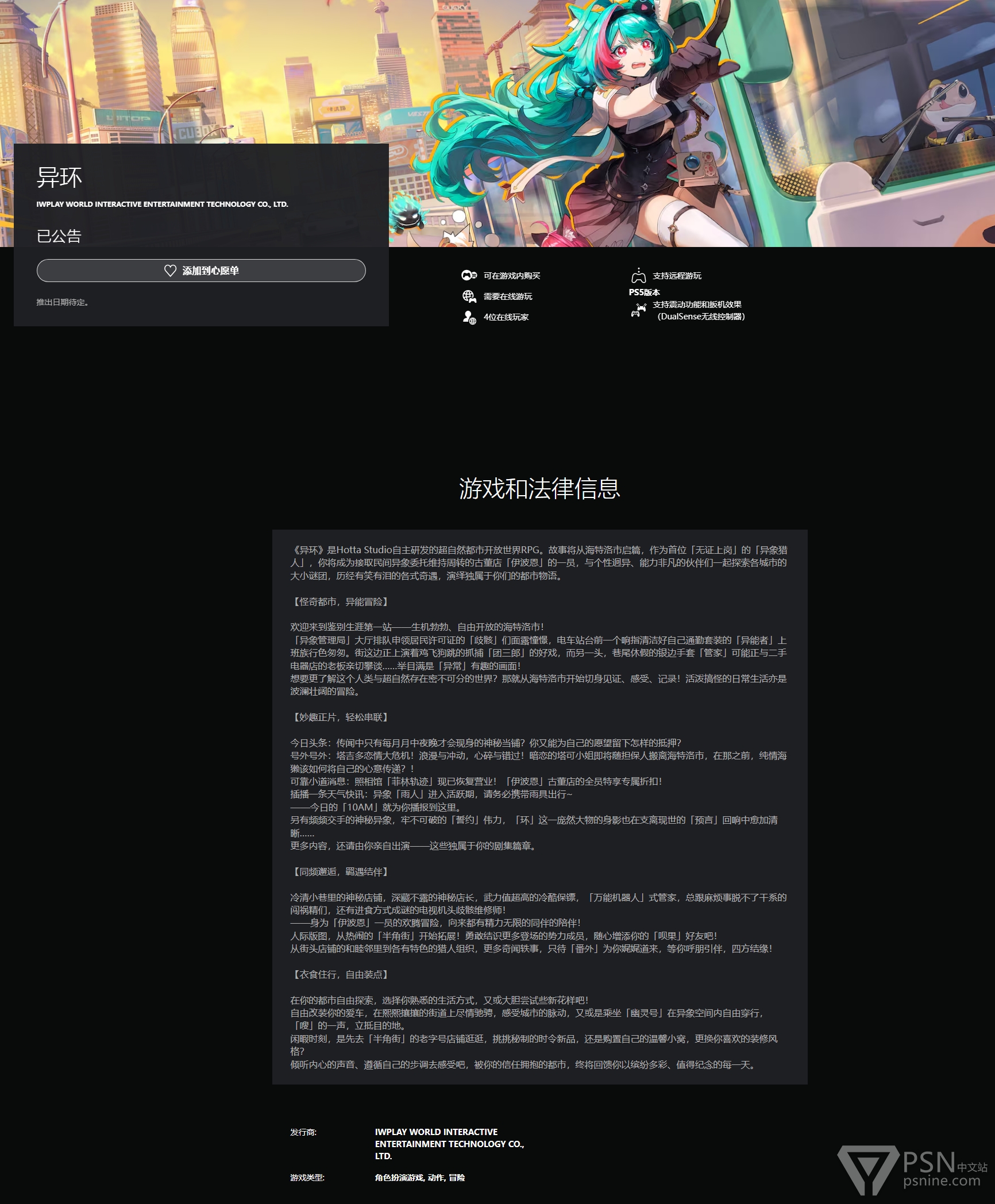 《异环》于今日上架PlayStation Store,点击出处前往商店页面。