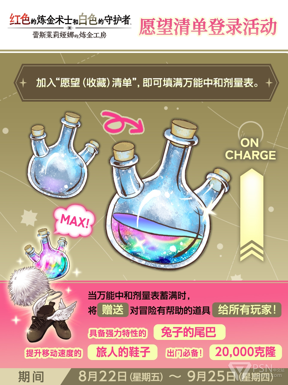 PS5/Switch/Steam版《红色的炼金术士和白色的守护者~蕾斯莱莉娅娜的炼金工房~》简体中文版在不久之后就要与大家见面啦!今日特此举办愿望单登录活动!大家动动小手,为这次的炼金贡献力量吧!