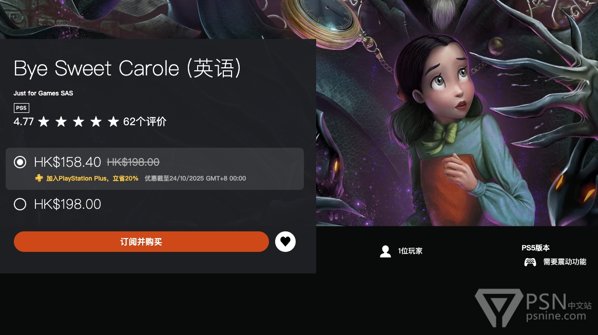 恐怖游戏【Bye Sweet Carole】已经上架港服,但是没有中文