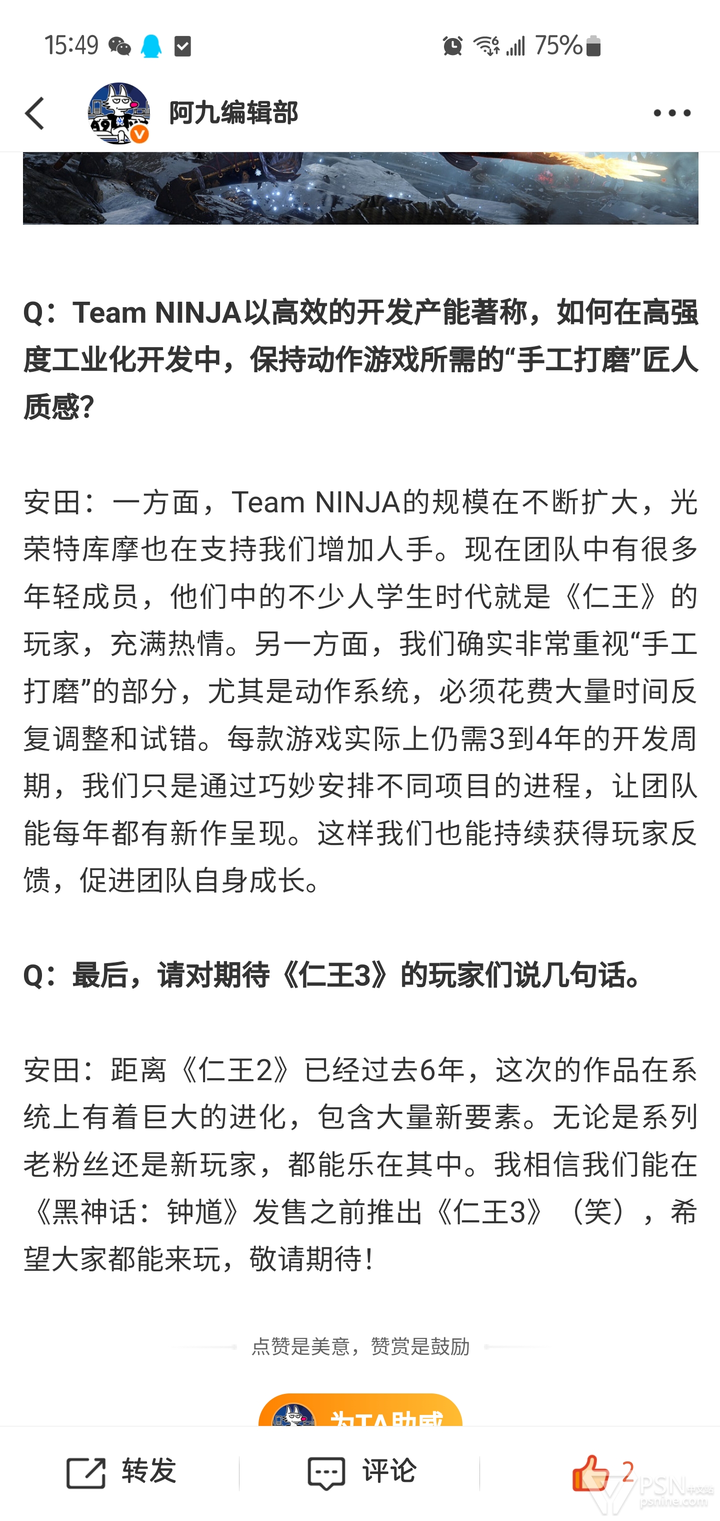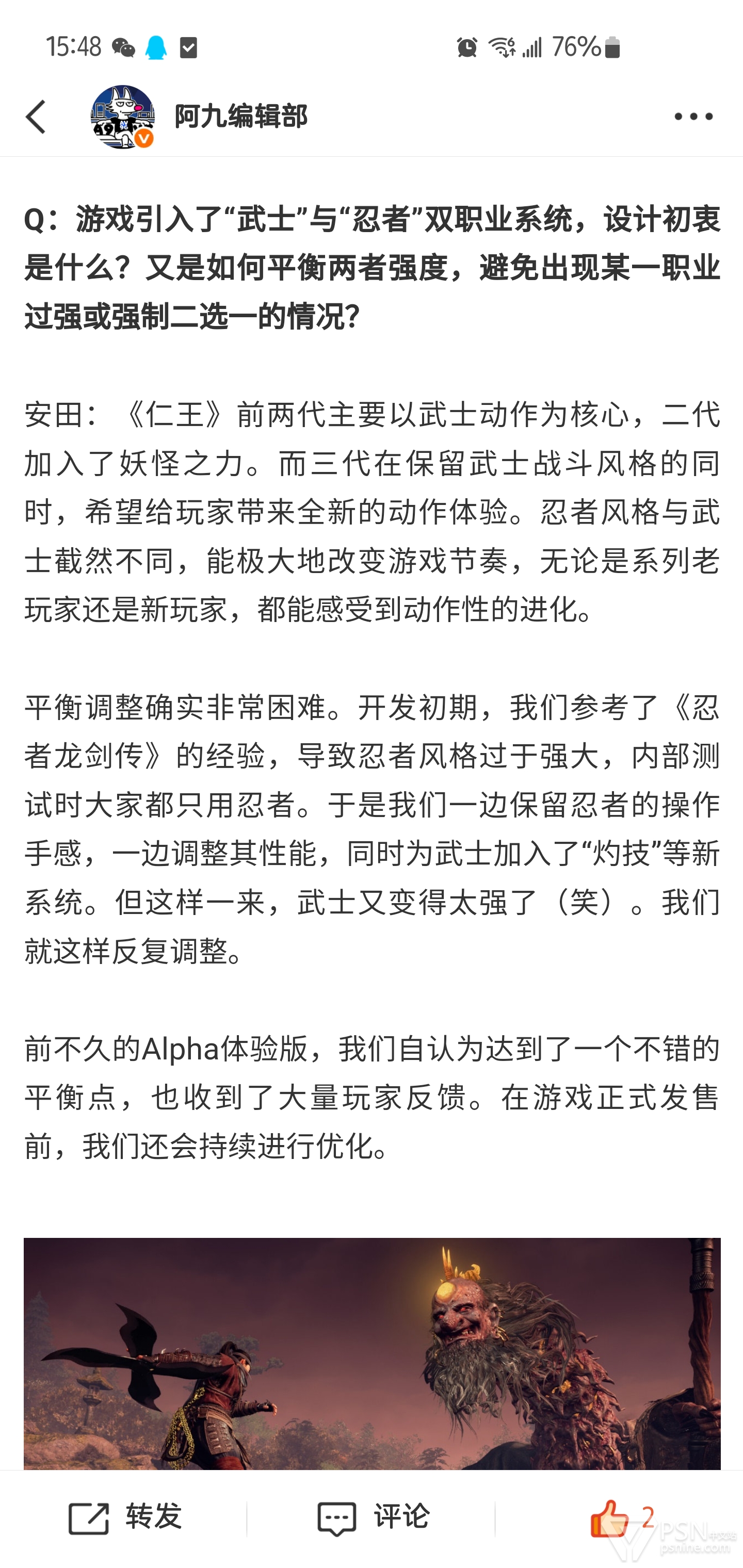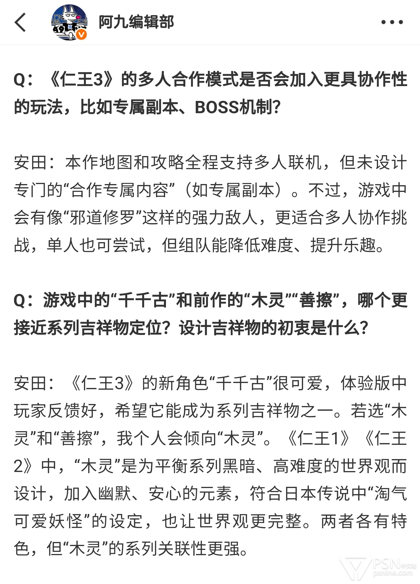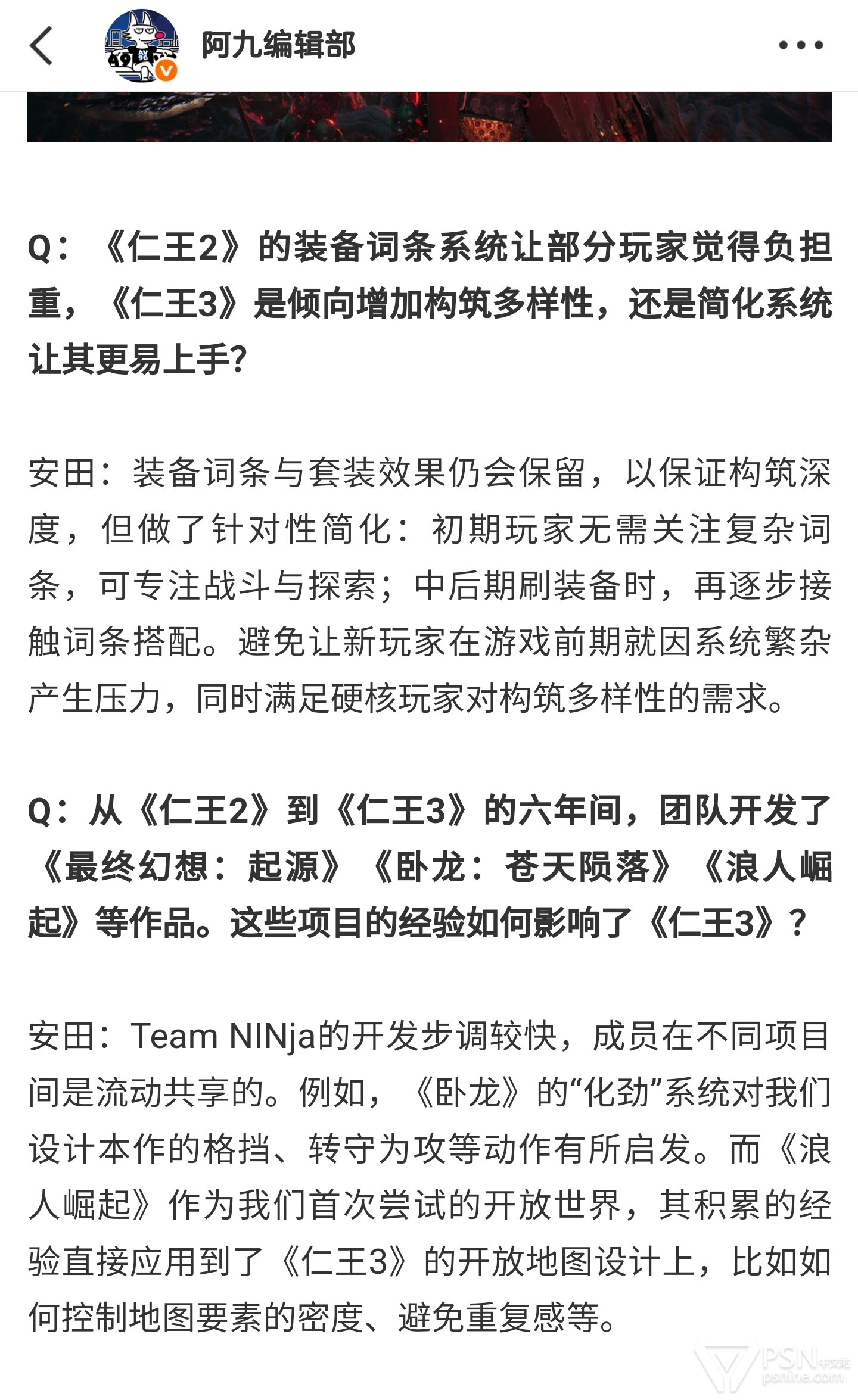 光荣特库摩推出的战国题材动作角色扮演游戏《仁王3》将于2026年2月6日发售,登陆PS5/PC(Steam)平台。在东京电玩展举办期间,a9vg有幸采访了负责《仁王3》开发的Team NINJA的品牌长安田文彦先生。请他就游戏从开放地图、双职业系统、Boss设计理念以及开发经验汲取等问题进行了解答。以下为采访详情: