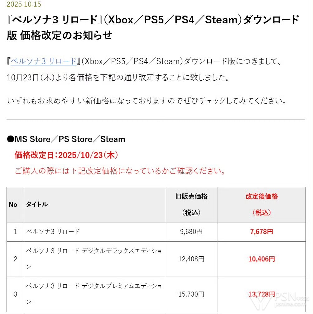 将于10月23日(周四)起,对以下图中版本的价格进行调整。