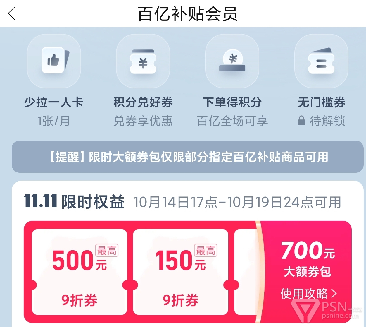 拼多多有便宜的ps5了 不过需要百亿补贴会员v3同时会员页面还需要双11专用券(图1-2)