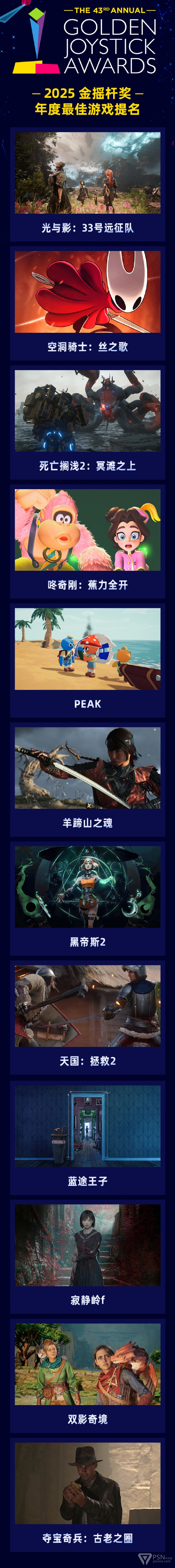 2025年金摇杆奖年度游戏大奖公布了12款提名游戏,11月8日之前玩家可以通过投票决出最后的胜者。这12款游戏如下: