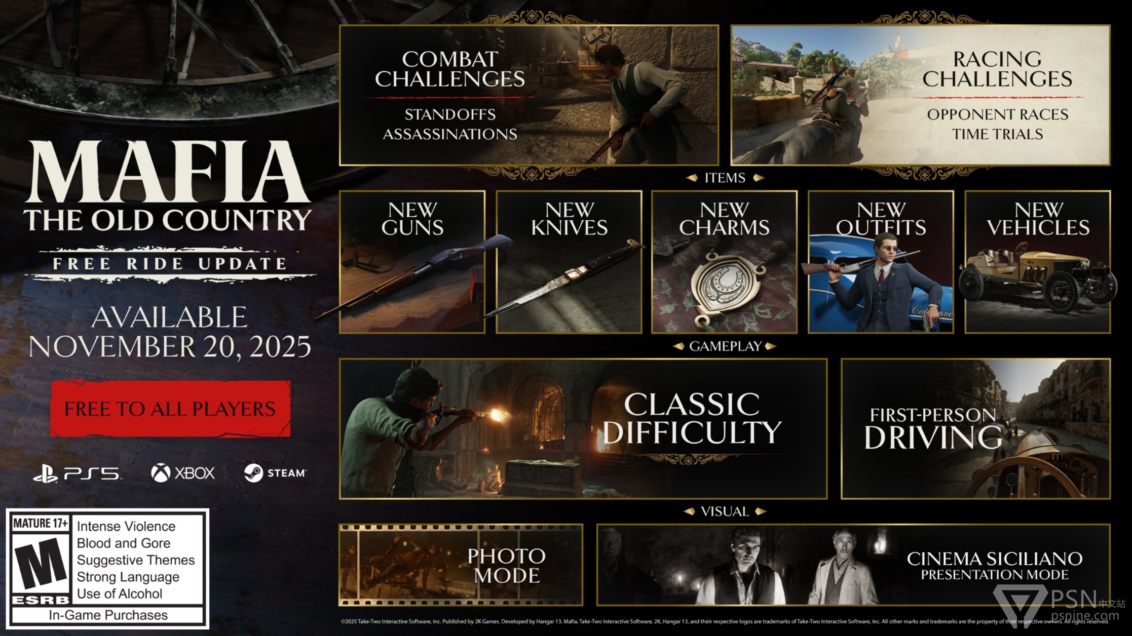 《黑手党:故乡》于北京时间本周四晚推出了免费更新「自由模式」,更新详情可点击出处查看(官方中文版本)。