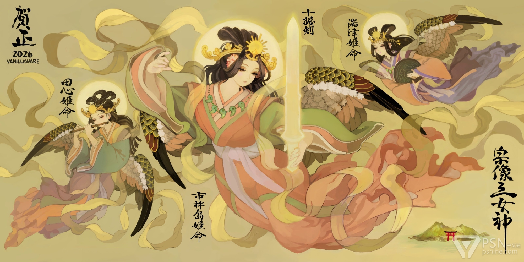@jietl 这三个是日本传统神话里的海洋三女神,算是天照大神和须佐之男的孩子。以前没出现在香草社的游戏里,不过这个画风就相当胧村正了
