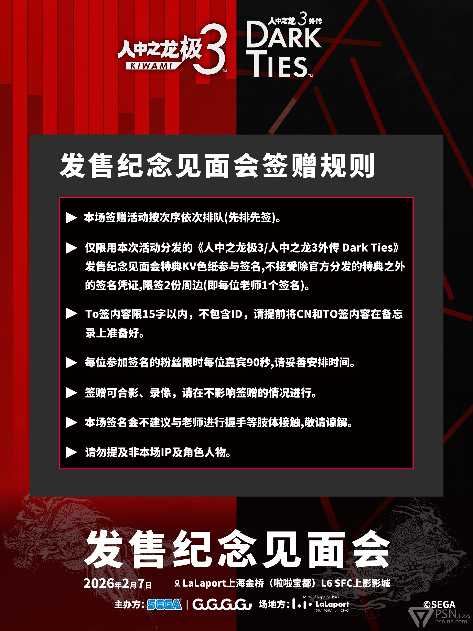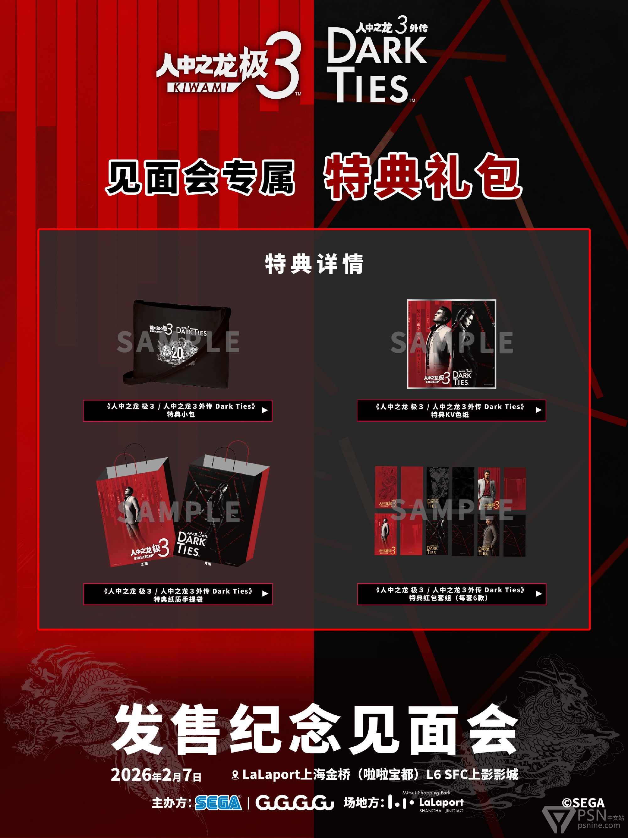 《人中之龙 极3 / 人中之龙3外传 Dark Ties》发售纪念见面会将于2月7日空降LaLaport上海金桥!