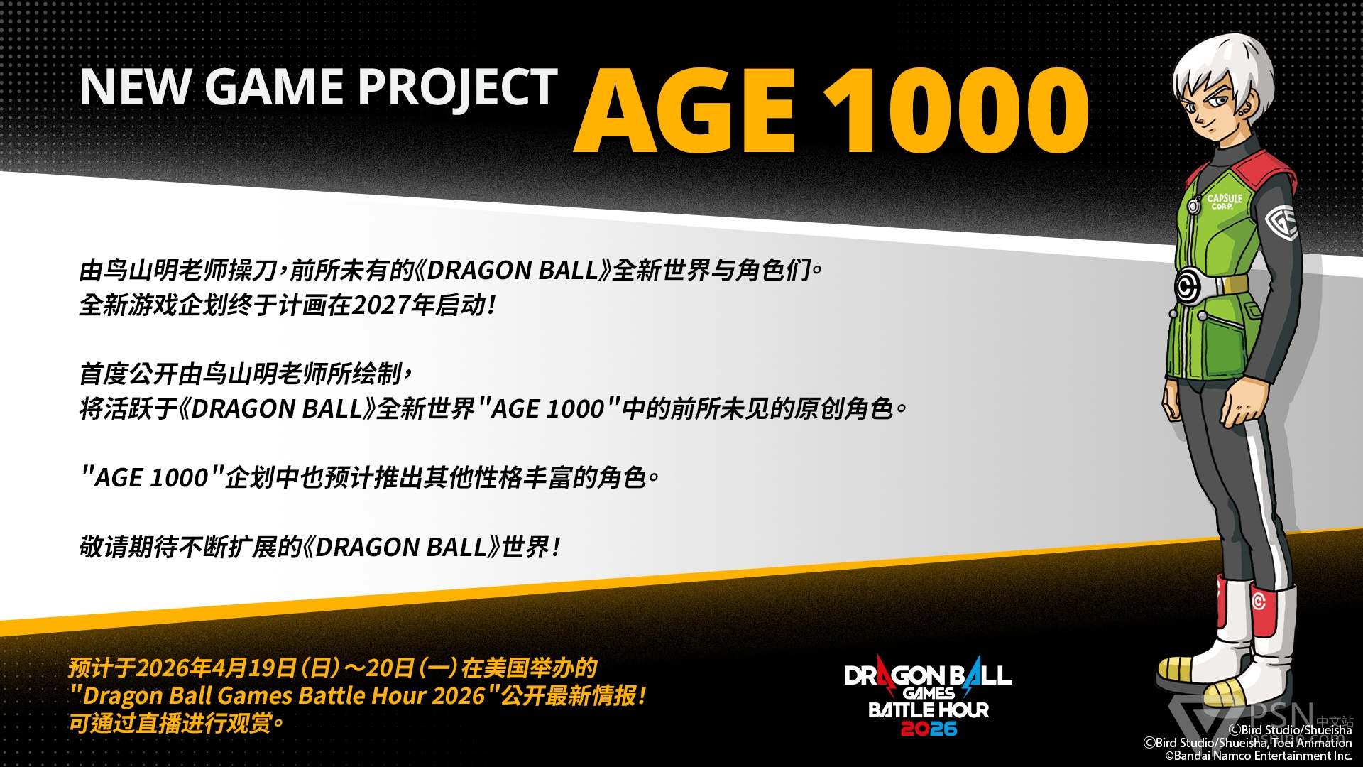 后续情报预定于4月19日~20日在美国举办的"Dragon Ball Games Battle Hour 2026"中公布,敬请期待!