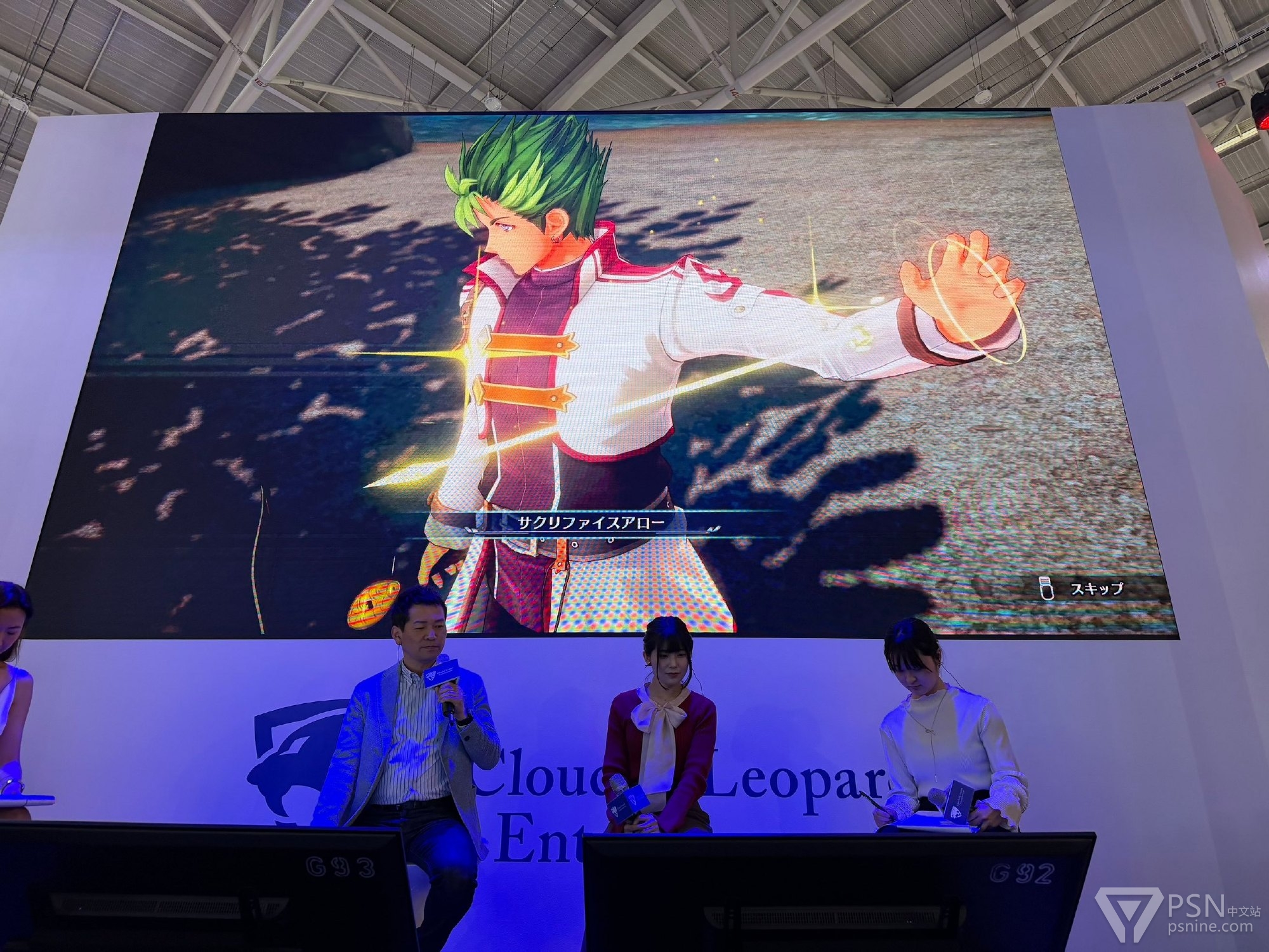 睽违两年再度来台的NIHON FALCOM 社长近藤先生,与于《空之轨迹 the 1st》中为「缇妲‧拉赛尔」献声的饭田光小姐连袂出席云豹娱乐舞台活动。