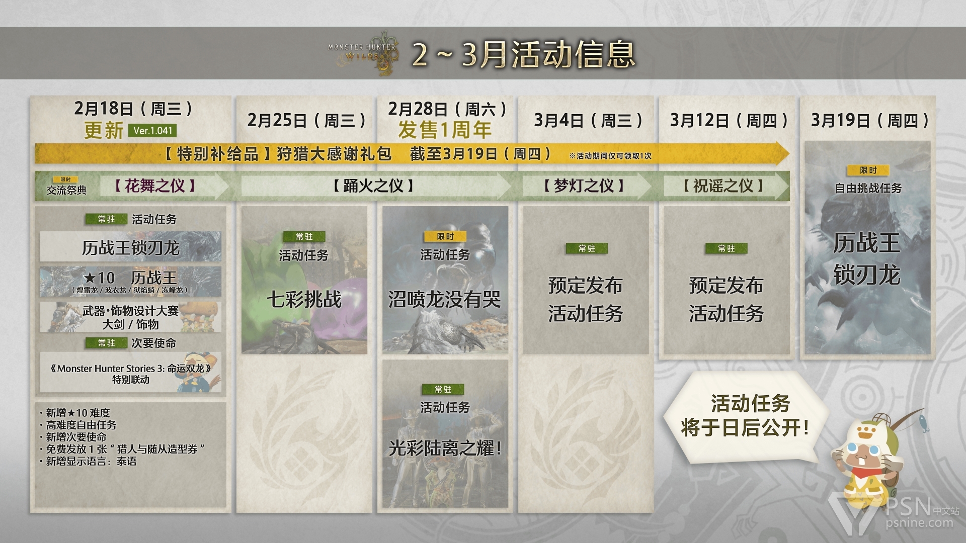 「历战王锁刃龙」将在2026年2月18日以常驻活动任务的形式登场。此外,还计划于2026年3月19日发布「历战王锁刃龙」的限时自由挑战任务。
