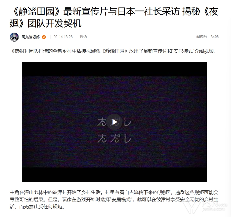 《静谧田园》最新宣传片与日本一社长采访 揭秘《夜廻》团队开发契机