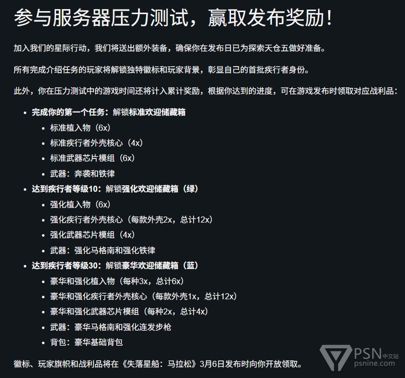 《失落星船:马拉松》将于北京时间2026年2月27日2:00-3月3日2:00在PS5/Xbox Series/Steam上举行公开测试,支持跨平台游戏和跨平台进度互通。