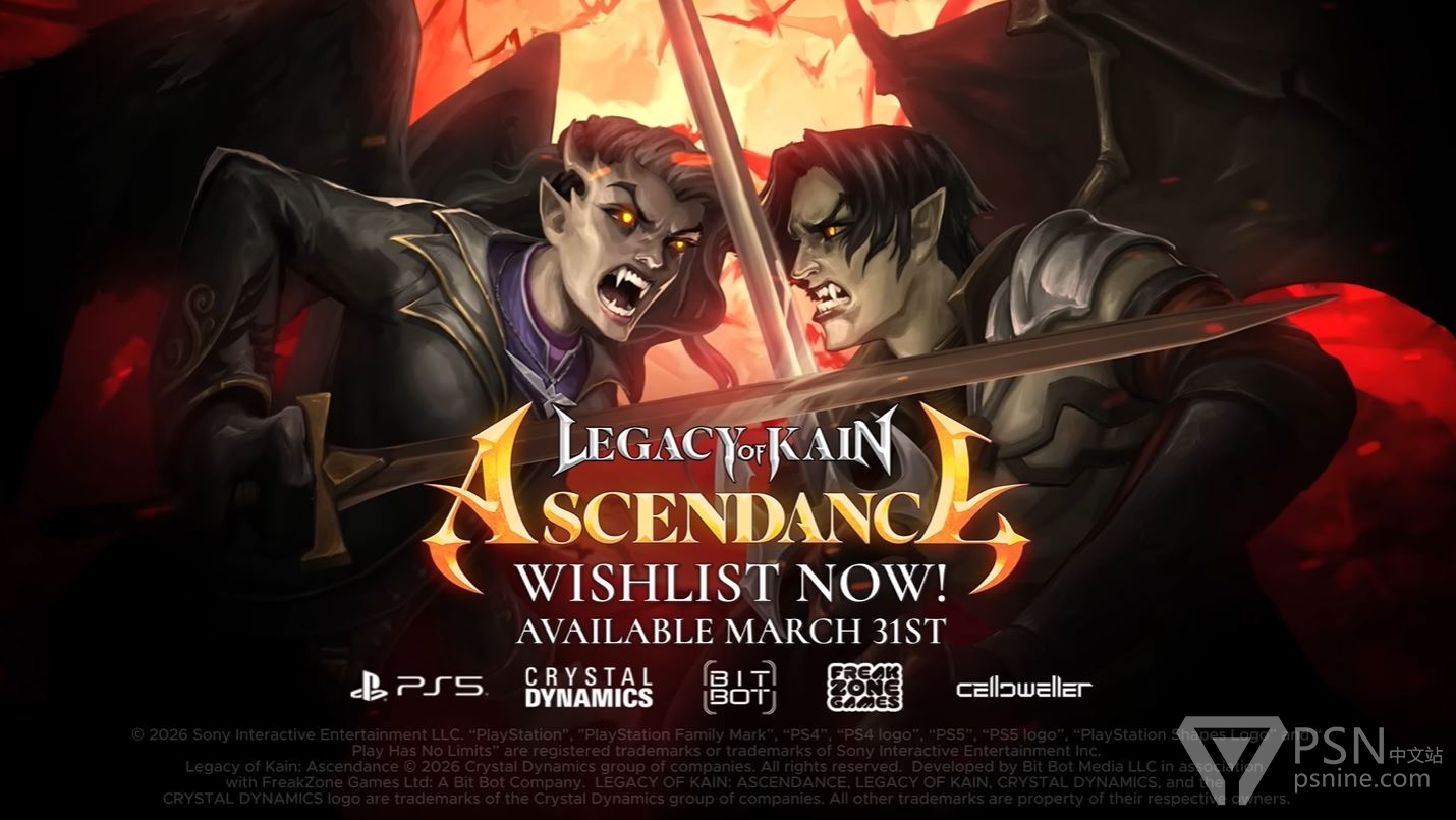 《凯恩的遗产:Ascendance》将于2026年3月31日发售,登陆PS5。游戏支持简体中文。