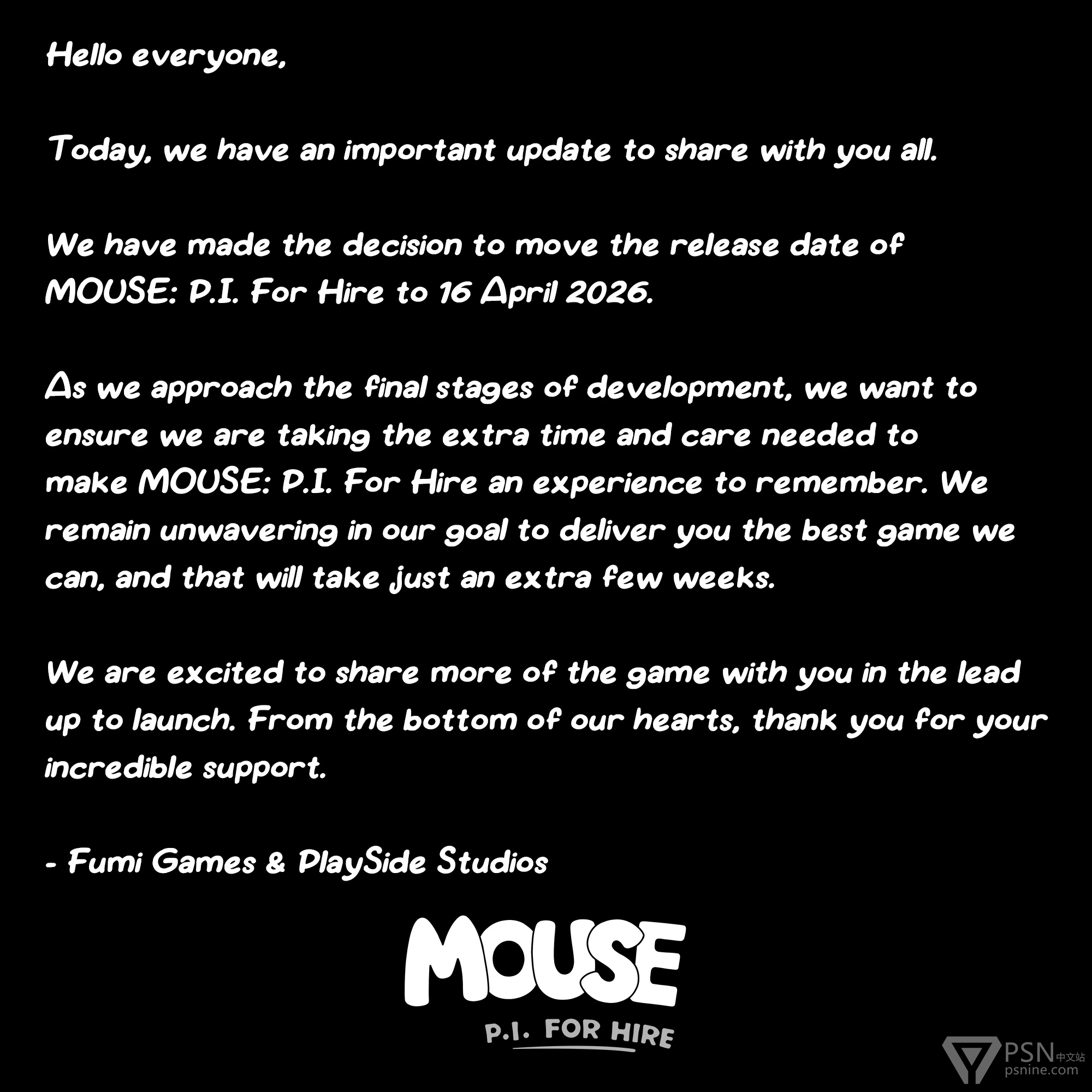 《神探杰克鼠》延期到4月16日发售,平台PS4/5、Xbox、NS、PC。