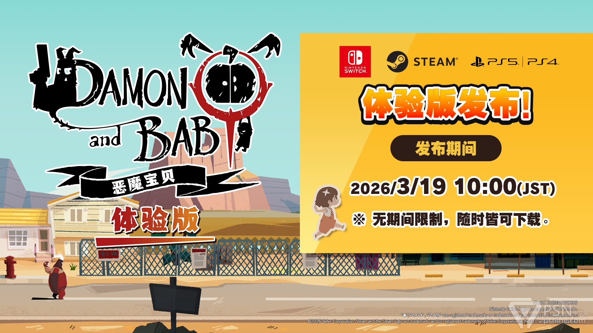《恶魔宝贝》将于北京时间2026年3月19日9:00在PS5/PS4上推出试玩版,试玩版存档可继承至正式版中。