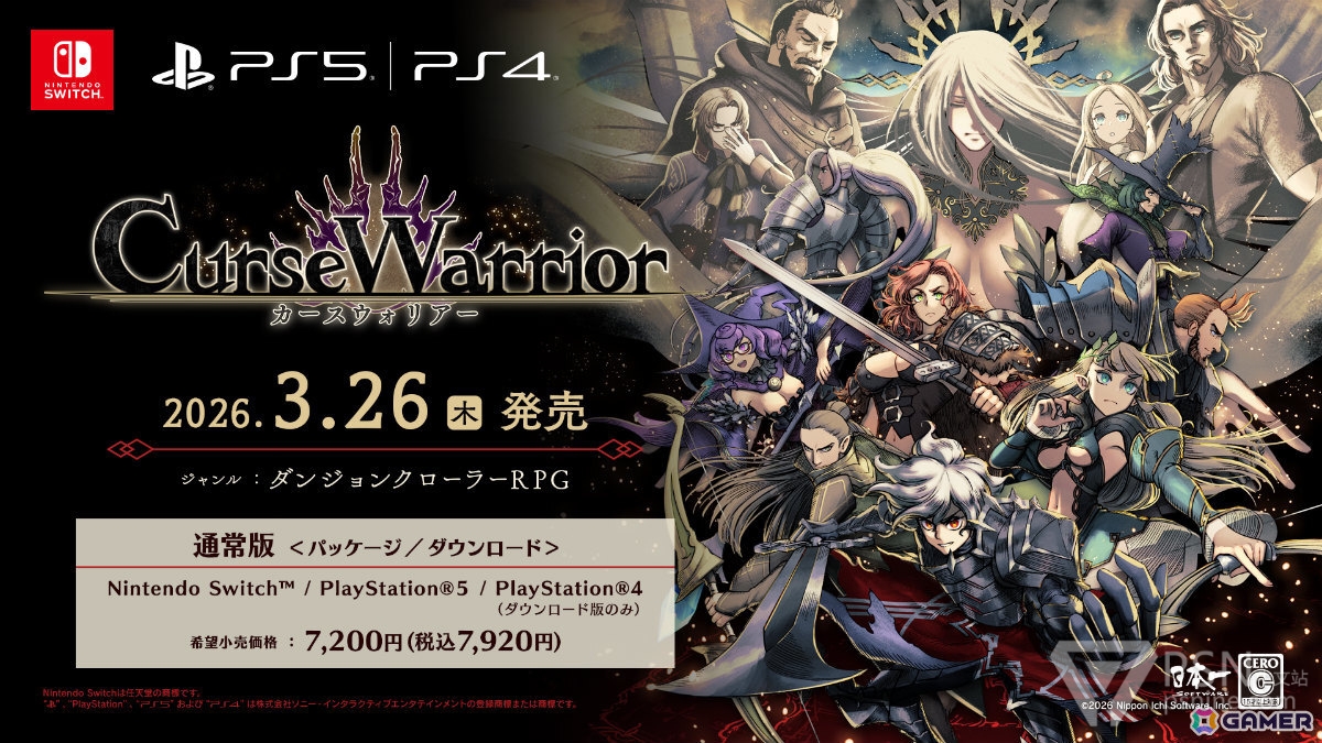 日本一迷宫探索RPG新作《Curse Warrior》体验版本日北京时间晚23点发布,游戏将于2026年3月26日登陆Switch/PS5/PS4平台。