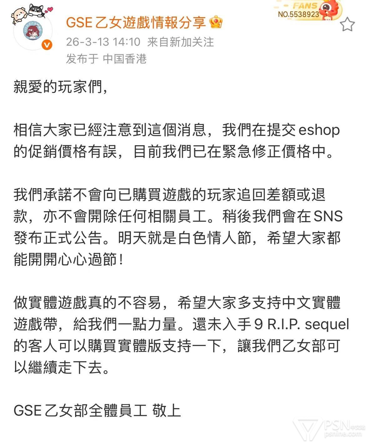 之前gse在pss港服也临时工过,虽然就一款游戏,女鬼桥2,在机因里就有记录,也是打折弄反了,这种发行商自己弄错价格的事,除非发行商自己要退,否则平台方才懒得管,这可是一大波流水