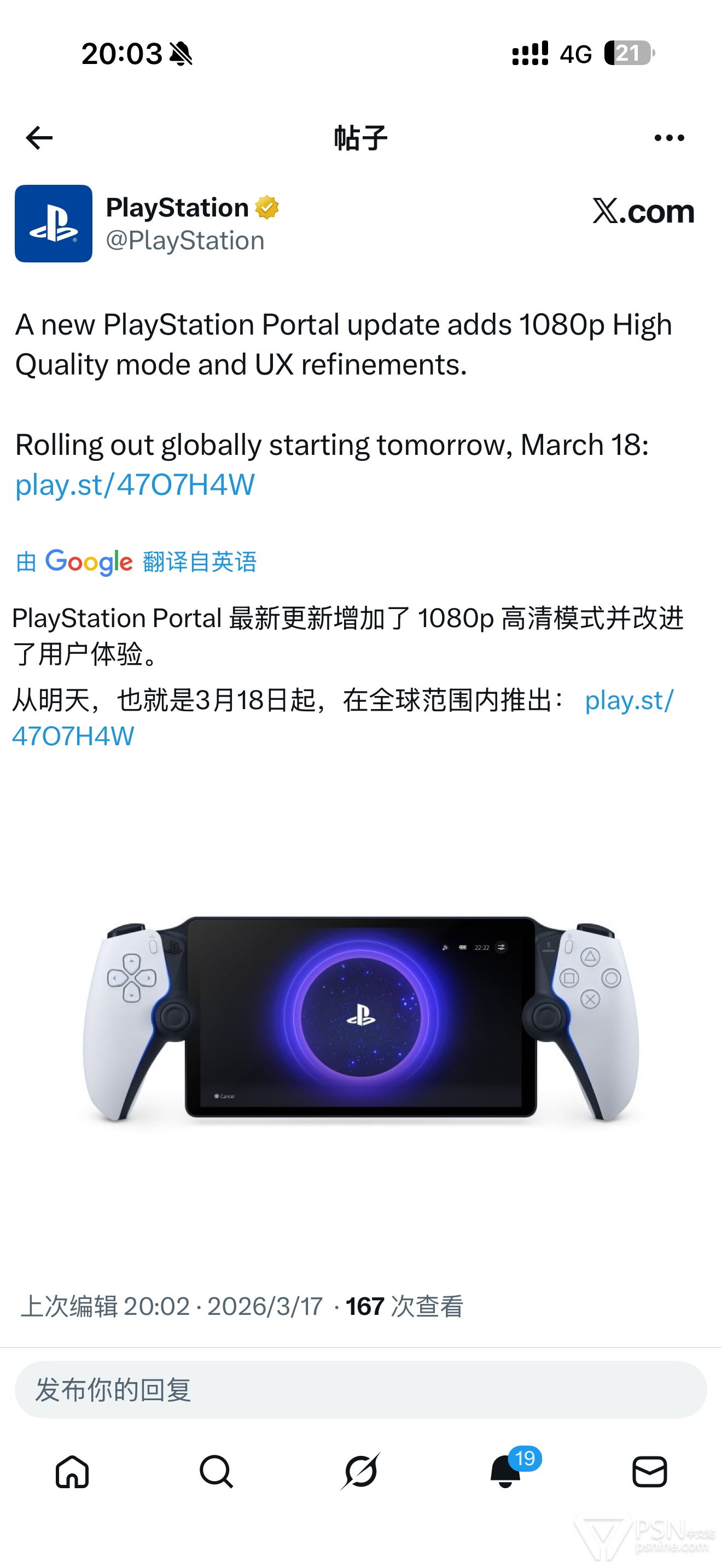 SIE宣布将于 3 月 18 日发布 PlayStation Portal 的新系统软件更新,该更新将增加 1080p 高质量模式并优化用户体验。