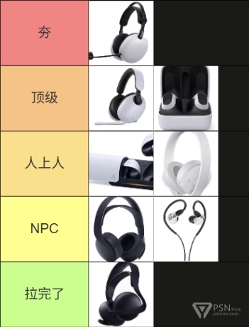 Pulse 3d:ps5首发时推出的耳机,只能用接收器和有线,音质和电池都普普通通,3d空间音效也是主机功能和耳机并不强绑定。没有降噪,佩戴比较夹头,不是很舒适,时间长了还会出现耳罩掉皮。内置麦克风的效果倒是意外还行。给到npc。