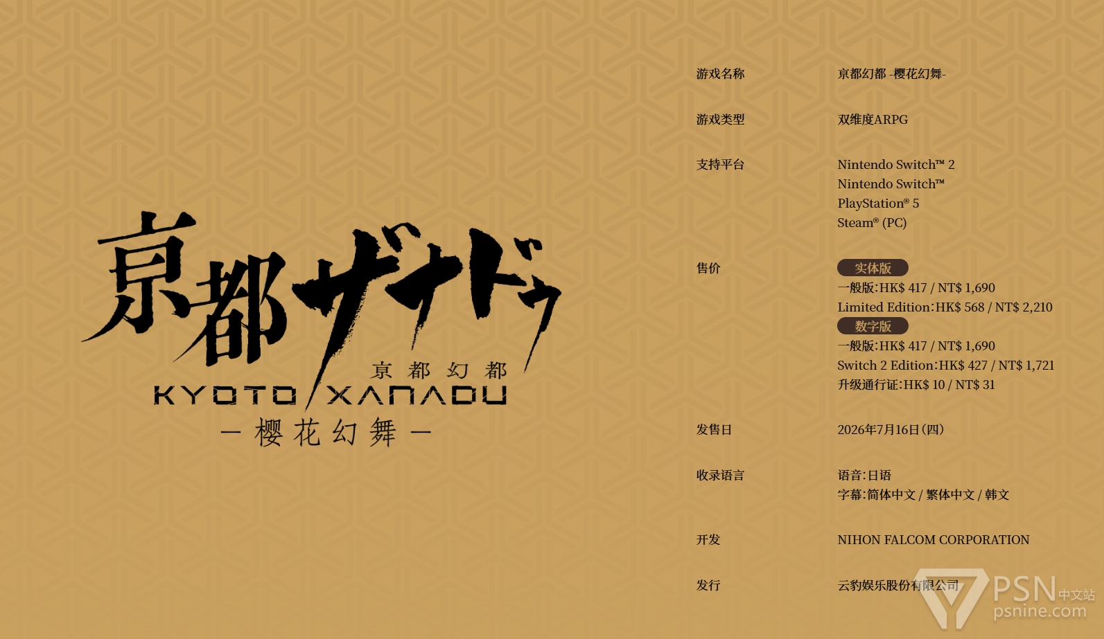 《亰都幻都 -樱花幻舞-》中文售价已公开