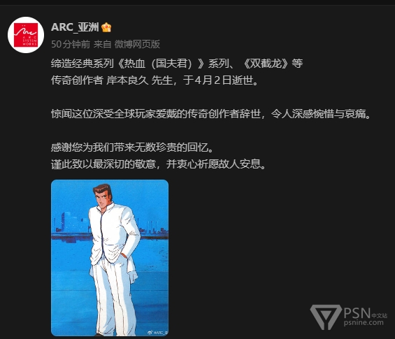 《热血》系列与《双截龙》系列之父 岸本良久 已于2026年4月2日去世,享年64岁
