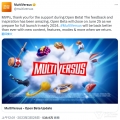 《MultiVersus》将于:2023年4月4日从各平台下架,游戏也将停止更新;2023年6月25日结束目前正在进行的公开测试并关闭游戏的线上服务(线上服务关闭后玩家可游玩离线模式);2024年初本作将正式...