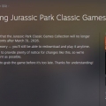 《侏罗纪公园:经典游戏合集》将于2026年3月31日下架停售,已购买游戏的玩家停售后仍可正常下载游玩。出处为美服商店,游戏正在2.5折(会员为2折)促销中。港服商店好像没上架这个游戏。