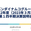 万代南梦宫今日公开22-23财年Q1(4~6月)财报,该季度销售额2162.41亿日元,同比增长21.5%,营业利润443.93亿日元,同比增长64.3%。其中以游戏内容为主的数字业务销售额895.99亿日元,同比增长...