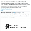 小岛工作室:作为一家独立运营的创意工作室,KJP将继续努力创造出深受粉丝喜爱的作品。我们将探索各种表现形式的可能性,例如游戏、电影与音乐,通过符合时代与技术发展的平台将自家作品传递给...