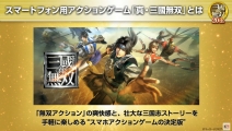 光荣特库摩于TGS直播节目上公开手游《真三国无双》,本作有着不逊于主机版的爽快战斗,支持横屏、竖屏任意切换进行游玩,收录丰富的剧情与原创模式,可以和其他玩家共斗·非同期对战,还包含多彩...